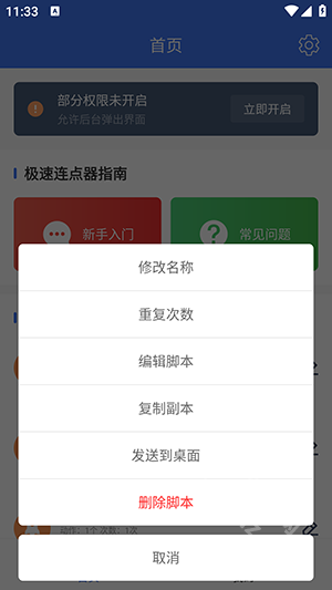 0系统的设备仅能获取应用内的无障碍权限,无法在其他应用里使用连点器功能。低系统版本的用户可通过开启Root权限来获取完整操作权限,关于如何开启ROOT权限,可参考某度上的相关内容。