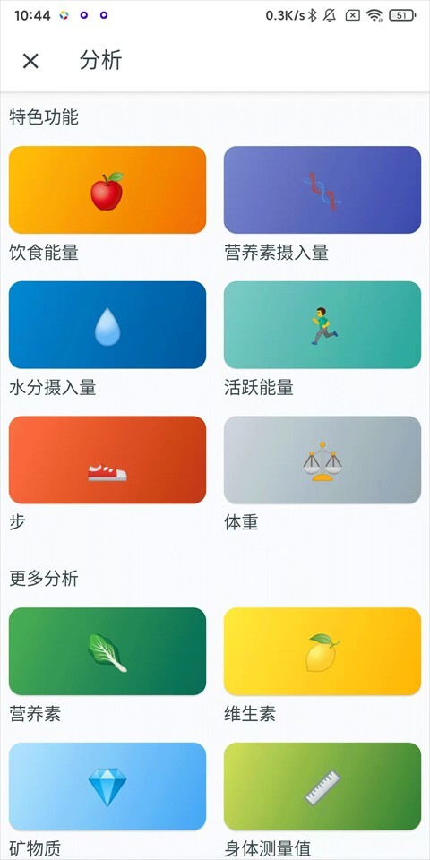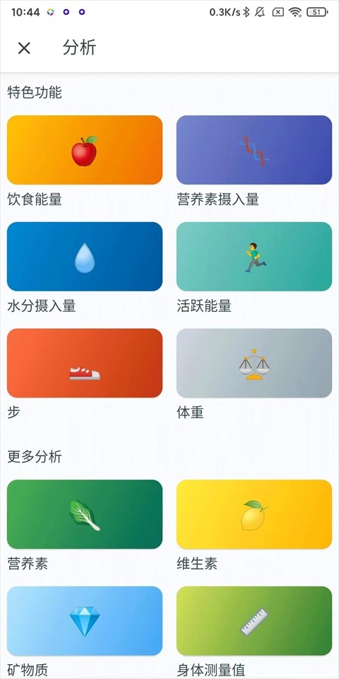 6、点击右上角的功能分析图标,还能查看更多特色功能与营养分析内容。