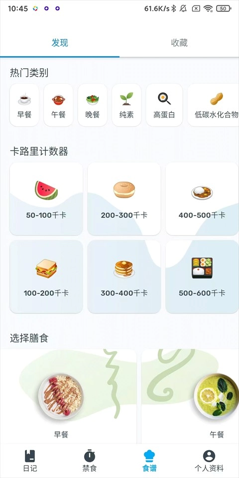 8、最后是雅卓食谱模块,涵盖早餐、午餐、晚餐,还有素餐、高蛋白餐等不同类型……为你的健康生活提供全面丰富的膳食规划。