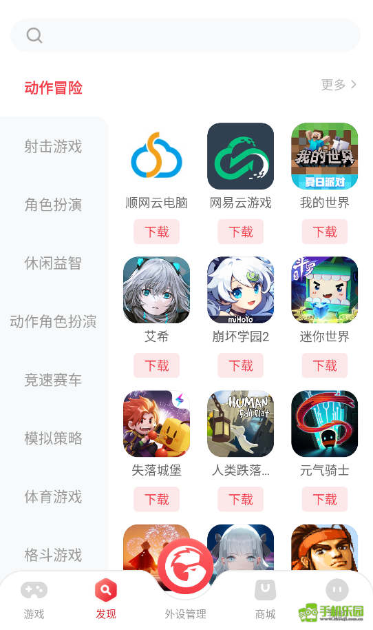 在发现界面还可以根据不同的类型进行筛选游戏。