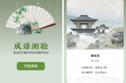3.多元学习方式:涵盖练习、测试、挑战等不同学习模式,还有成语卡片、填词、成语接龙等互动游戏,使学习过程更具趣味性和生动性。