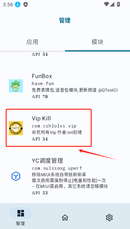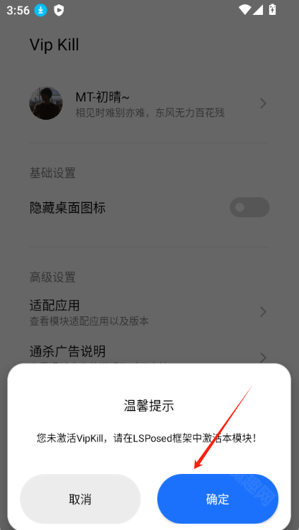配置应用:打开LSPosed应用,找到已安装的Vip Kill模块,