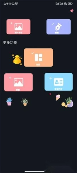 打开Promovie专业摄像机正版应用,进入主界面后,能看到图片美化、相机、拼图、相框、变美历史等功能选项,接下来我们以【图片美化】功能为例进行说明。