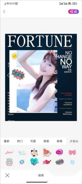 我们还能够借助添加一些可爱又有趣的贴纸,让照片的内容变得更加丰富。