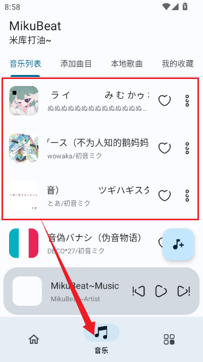 MikuBeat的播放界面上还搭配着超级可爱的初音动画,让我们在听歌的同时,还可以欣赏到萌萌的初音未来!要是我们想自己导入本地歌曲,MikuBeat软件也是完全支持的。而且MikuBeat的界面非常干净,快来试试吧!