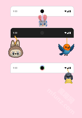 1、专注状态栏 + 刘海屏装饰,不替换桌面,只做个性化点缀。
