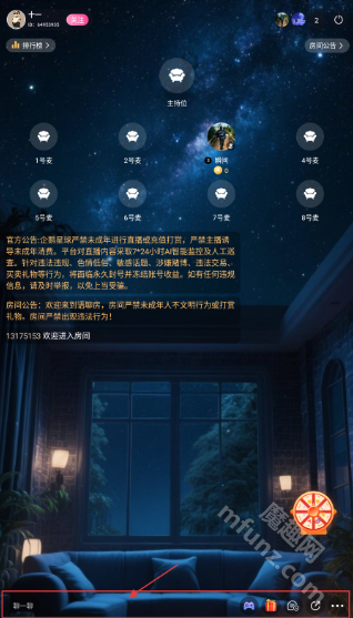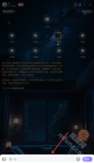 2、在房间内点击底部【聊一聊】输入框。