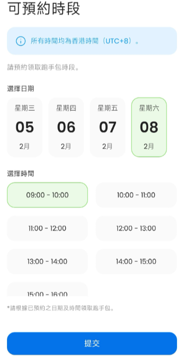 在渣打香港马拉松预约界面尝试修改,部分满额时段可能无法调整,以系统提示为准。