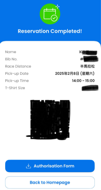 1、登录渣打香港马拉松App,首页进入 “领物预约” 入口,核对个人参赛信息。