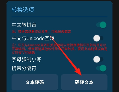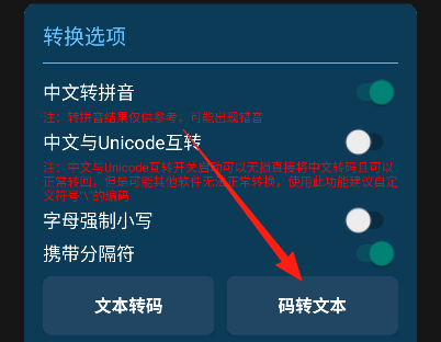 7. 点击“码转文本”按钮,工具会将摩斯电码转换成文本。