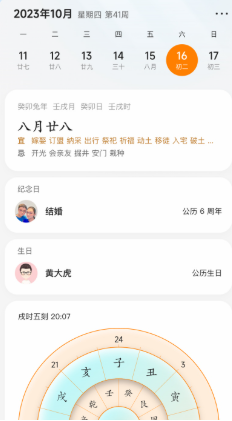 4、在日历界面,可以查看现在的时刻在十二时辰上对应的内容。