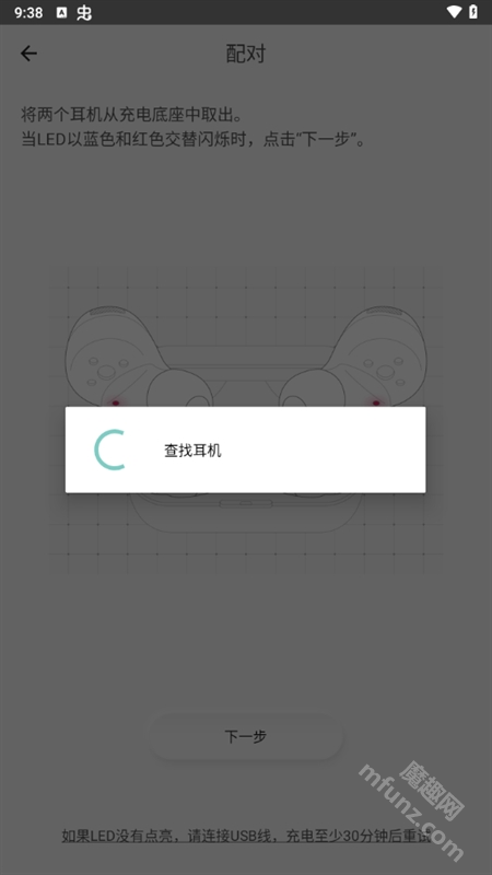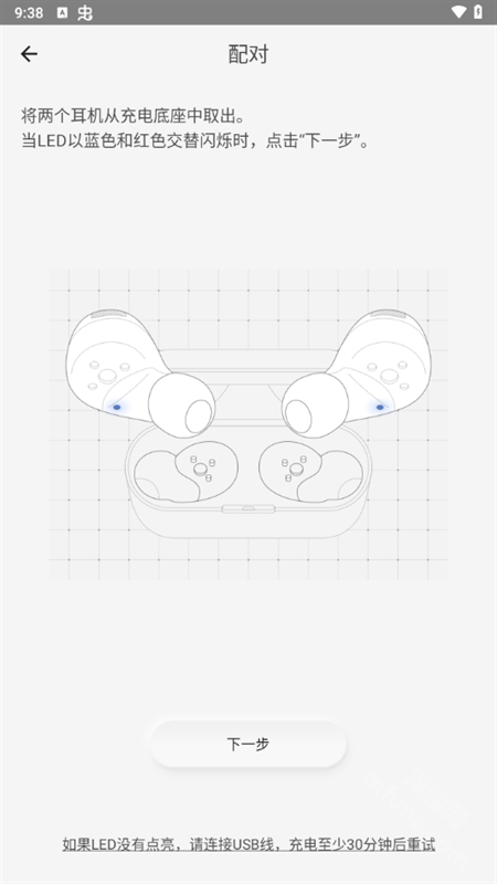 4. 当LED灯呈现蓝色和红色交替闪烁时,点击“下一步”。