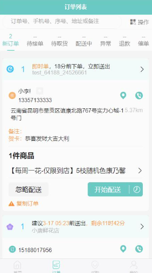 2、发布配送:准备好商品以后就可以发布配送订单,让骑手快速的进行配送;