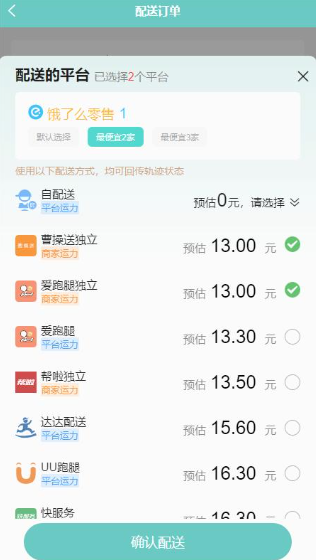 3、根据订单制作完成后,选择配送的平台。
