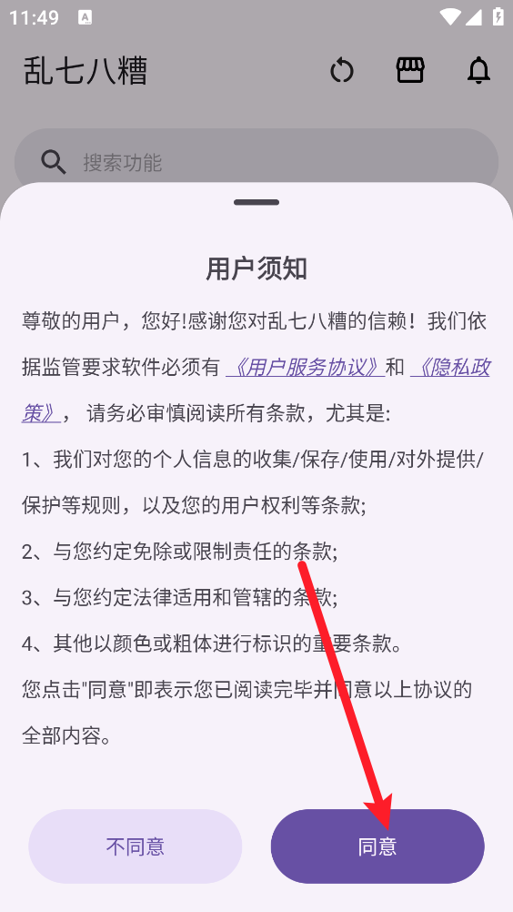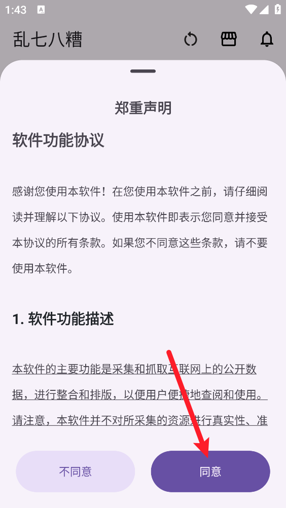 3、阅读申明并点击"同意"进入。