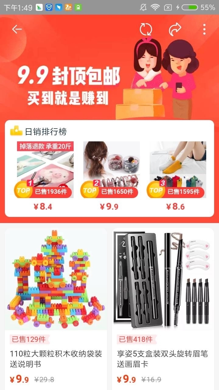 每天为您精心挑选超百款特惠商品,全场9块9封顶且包邮,限时开抢