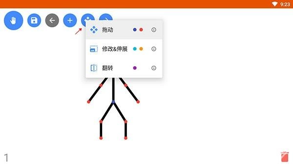 点击工具栏的“+”可以实现火柴人的形状改变;