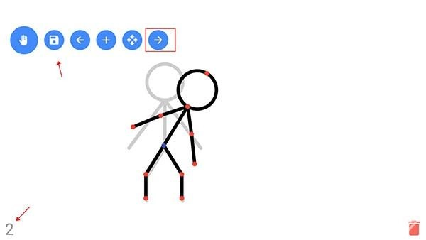 在完成第一页动画的设计后,点击工具栏中的“→”按钮,即可开始制作第二页动画,同时通过上方的功能选项能够保存当前已完成的动画内容。