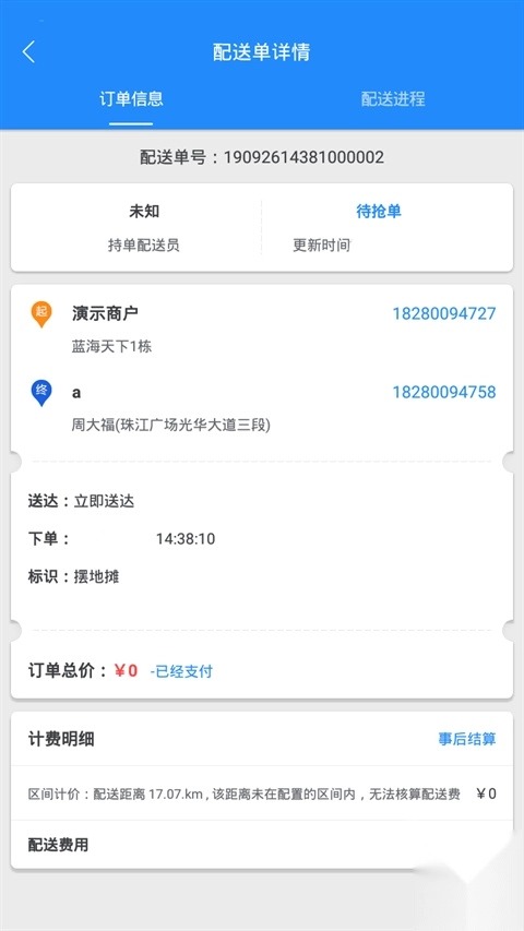 配送流程管理涵盖配送路线(含地图定位功能)以及配送人员的订单状态管理。
