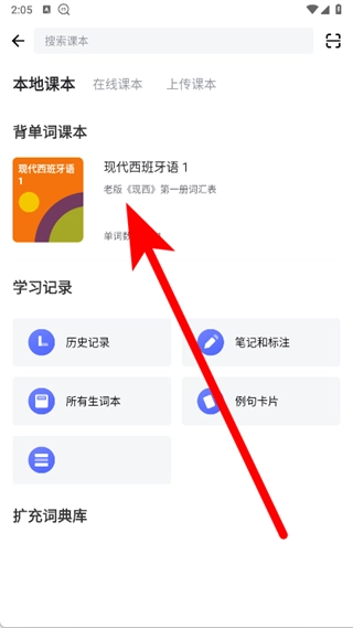 3、进入课本选择界面后,选定你要学习的西语课本,接着就能进入单词学习的环节了。