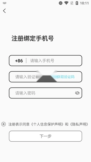 在注册页面填写你的手机号码、验证码等相关信息后,点击按钮完成注册流程。