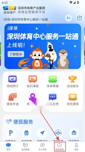 您可以便捷预订深圳市内的篮球、足球、羽毛球、游泳等各类体育场地,通过“一网统管,一键预约”的方式,轻松找到附近的场馆。
