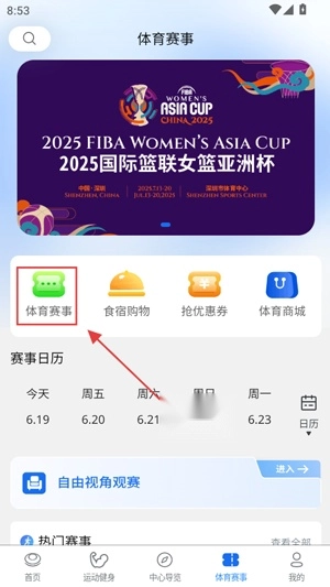 赛事界面再次点击体育赛事功能。
