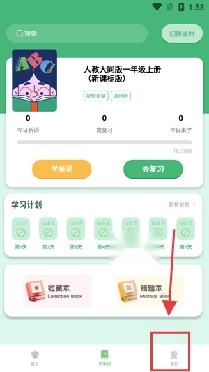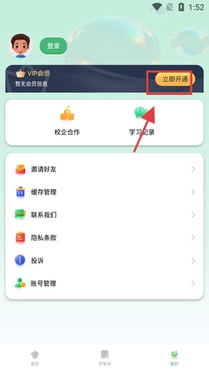 打开你的学霸背单词App,点击我的前往个人中心。
