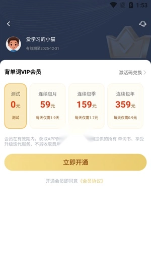 你可以在会员中心挑选想要开通的会员类型,然后点击立即开通按钮。