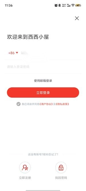 打开你的西西小屋App,在个人中心点击登录功能。