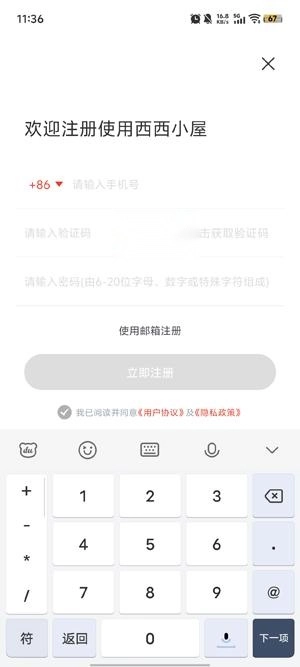 在账号注册界面输入手机号等信息,点击完成注册。