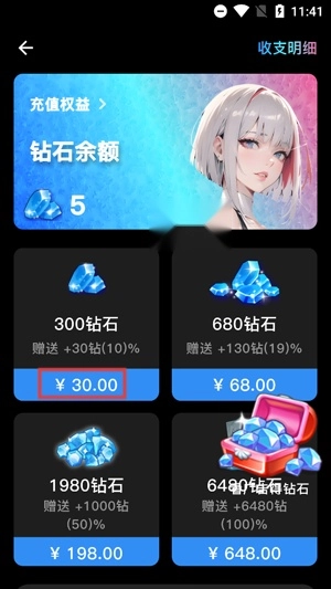 在钻石充值页面挑选好你想要充值的钻石数量,然后点击完成支付操作。
