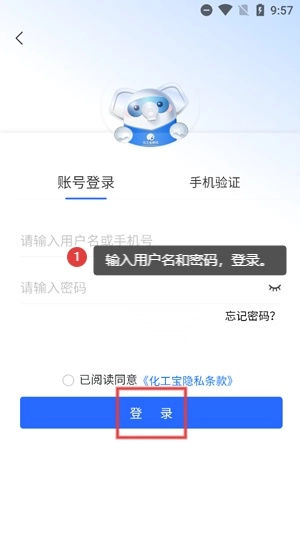 打开你的化工宝App,在工作台界面点击登录功能。