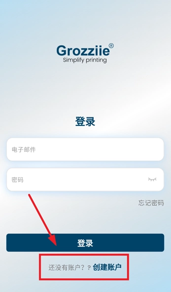 先安装并打开grozziie应用,进入登录界面后,找到“还没有账户/创建账户”的选项并点击。