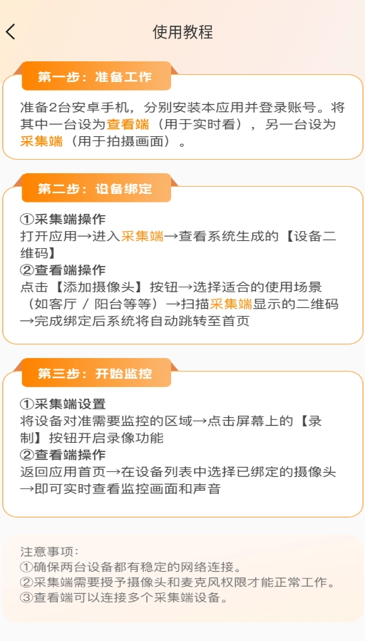 1、开启手机监控功能后,点击界面右上角的“帮助”图标,即可查阅详细的操作指引与功能说明。