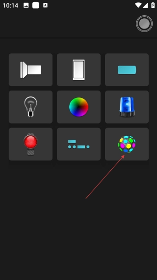 在手电筒的主界面上,点击右上角的功能按钮,就能展开工具选择界面。