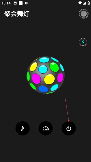 在聚会舞灯页面,点击电源按钮,即可启动舞灯的灯光效果展示。