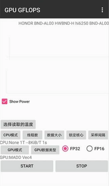 1、打开软件后会显示手机GPU的实际功率消耗值,用户选择一个GPU的功率值进行测试。