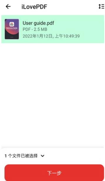 2、选择想要转换的PDF文档,点击下一步