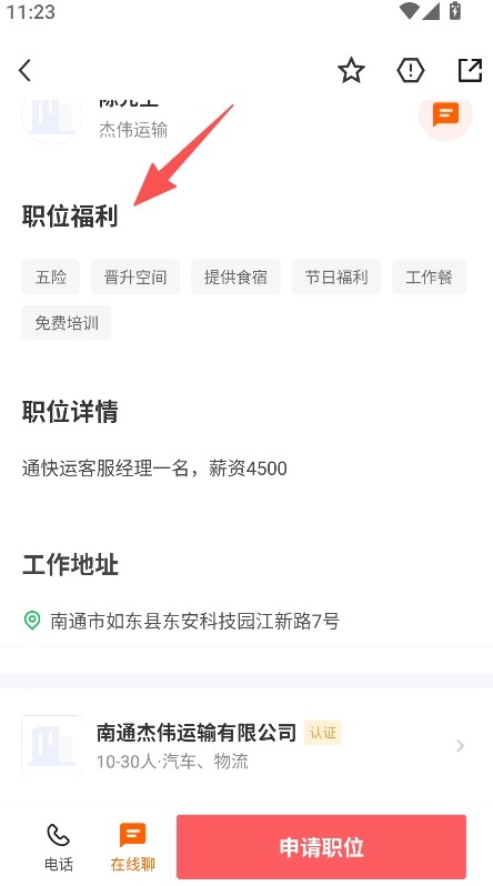 职位详情信息完整明确,福利、地址等内容清晰呈现,有助于求职者快速评估岗位适配度,为求职决策提供辅助参考。