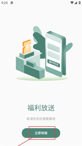 当你看到【福利放送】的入口时,点击【立即体验】按钮,就能进入新津折扣优惠的集中地,从而获取到相关的福利权益和优惠资源。