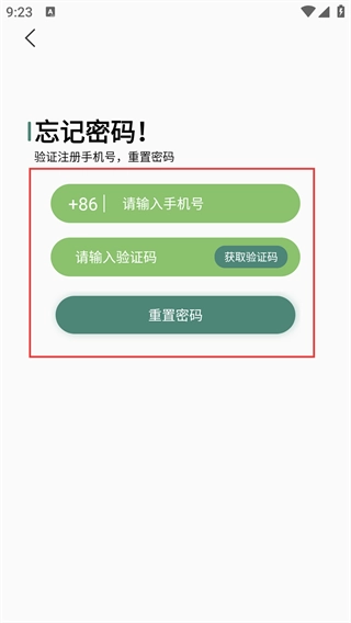 在【忘记密码】页面,先填写【+86-请输入手机号】这一栏,接着获取验证码并填入对应的输入框,最后点击【重置密码】按钮,即可完成密码的更新操作。