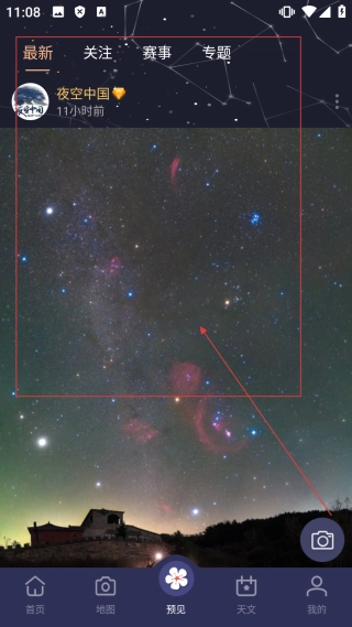 4、进入预见界面后,你可以【查看最新的天文资讯、欣赏星空图片、获取各类天文相关内容】,尽情享受丰富的天文资讯服务。