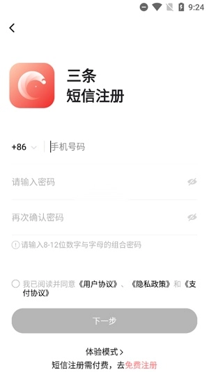 输入你的手机号和验证码等信息,点击完成注册。