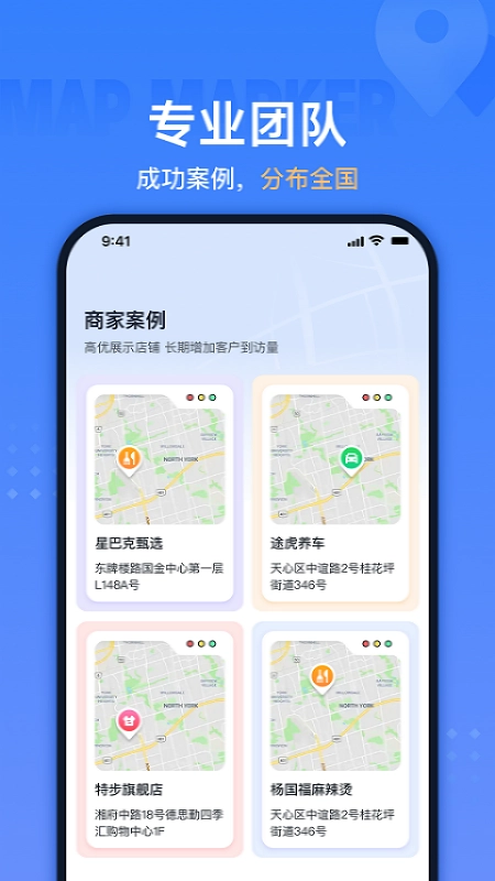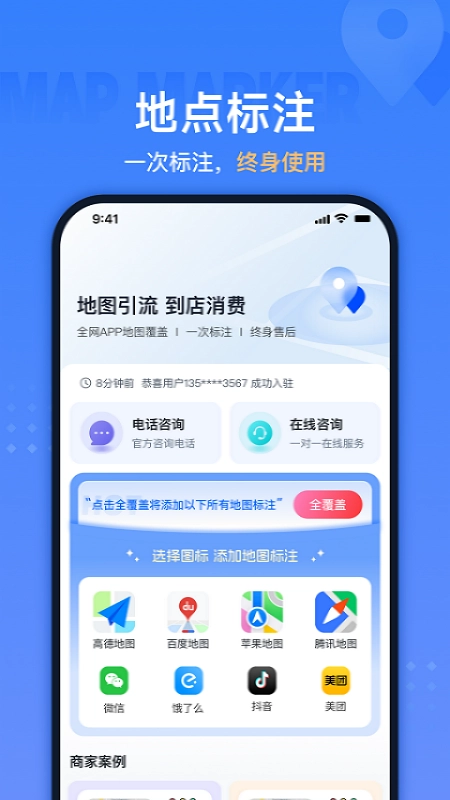 支持在高德、百度、腾讯等全网主流地图上完成地点标注,只需标注一次,即可终身有效使用。