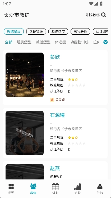 A: 能够依据教练的星级、认证等级、授课项目、用户口碑等多个维度进行筛选,同时也支持通过距离或者关键词来搜索。
