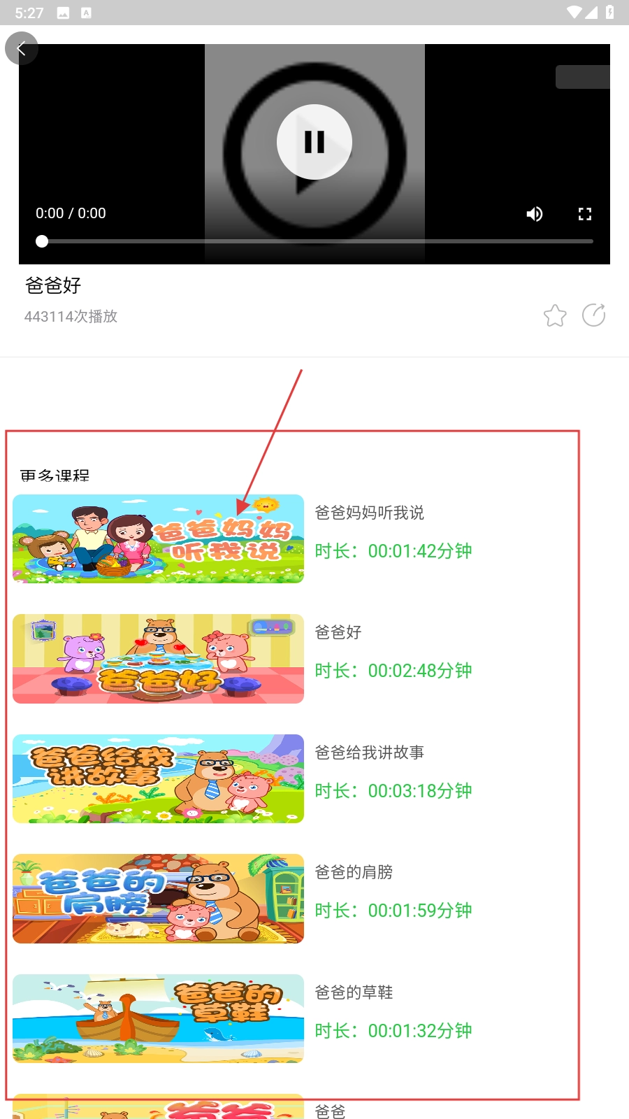 3、点击儿歌后进入播放页面,可播放儿歌,同时在【更多课程】中能看到其他相关儿歌推荐,点击可切换播放。