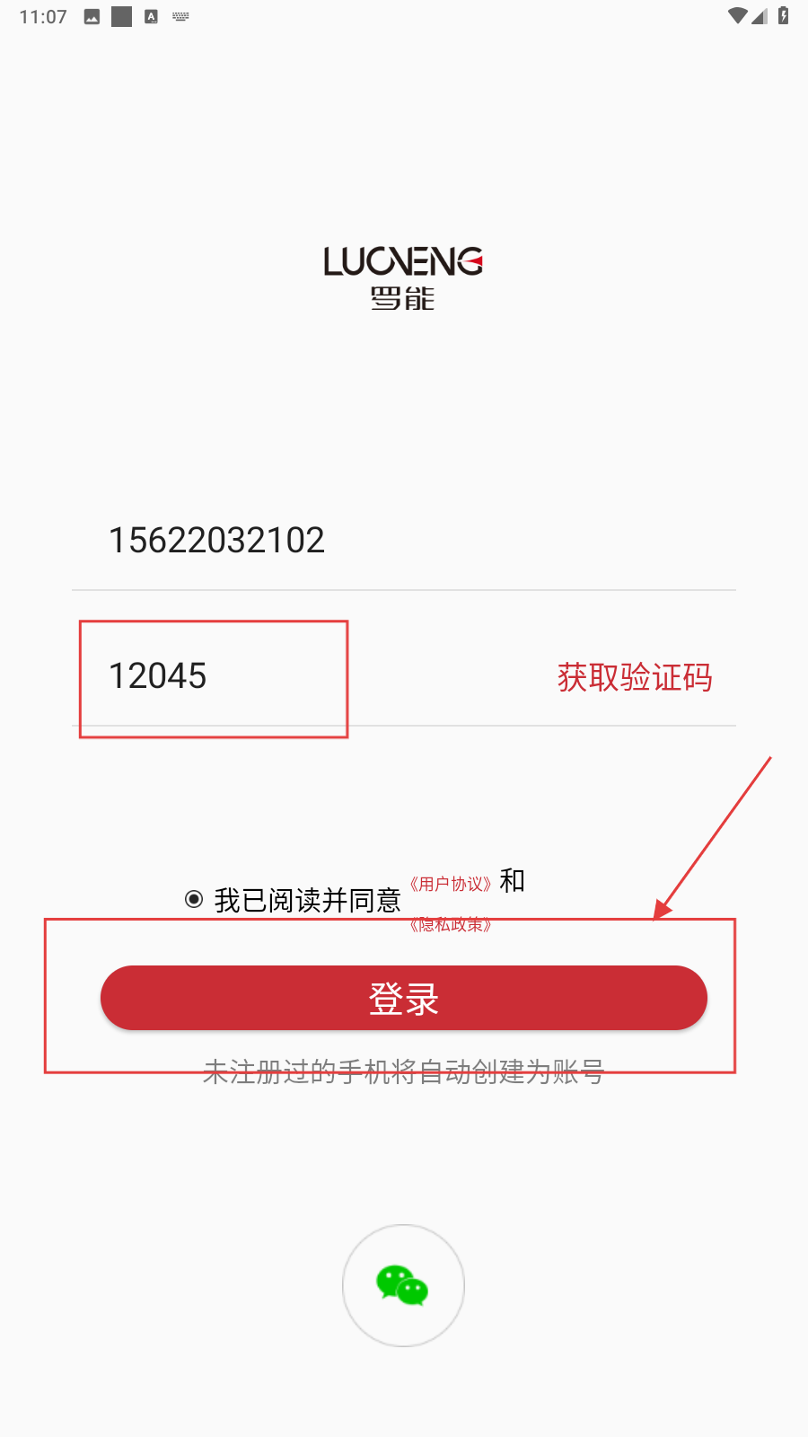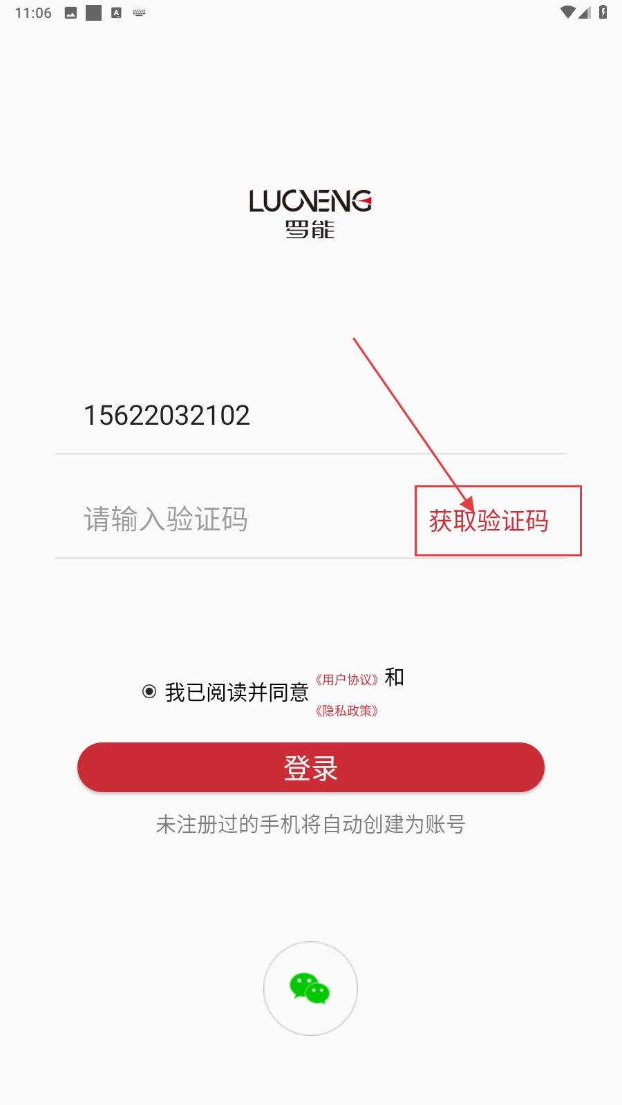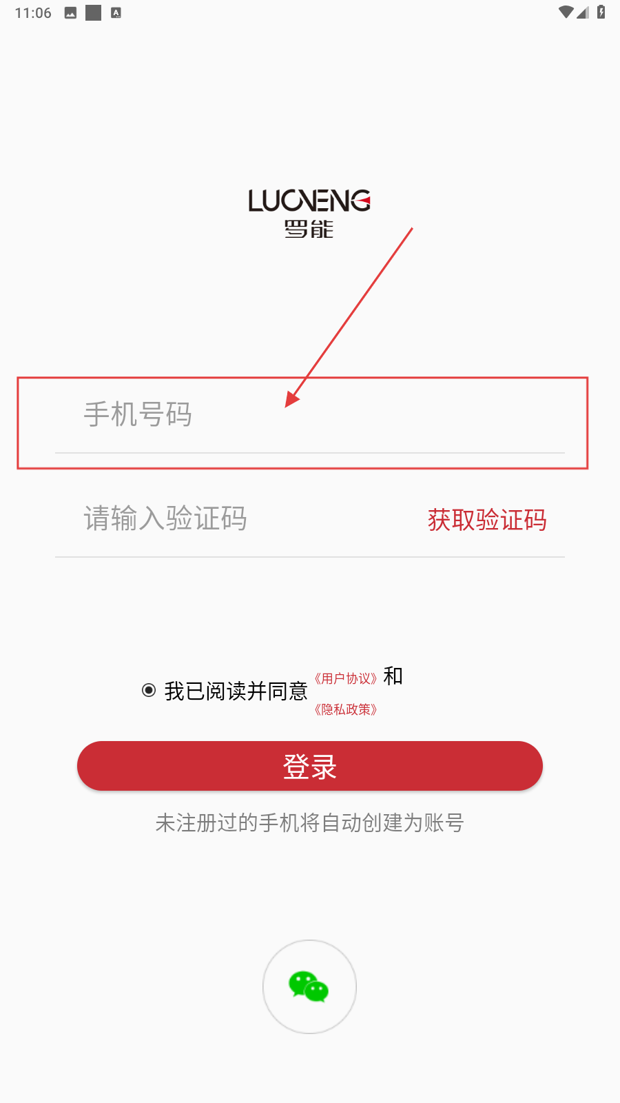 1、打开应用,填写手机号。