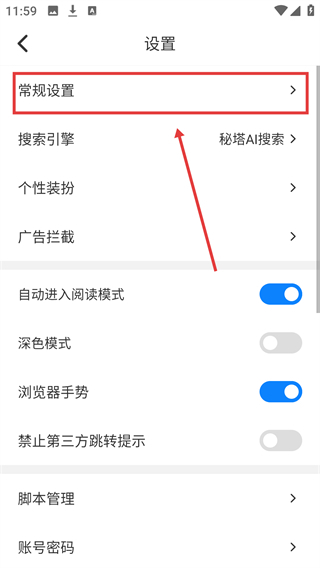 3、在设置页,点【常规设置】选项,可进入常规设置页面,管理基础的应用功能选项呢。