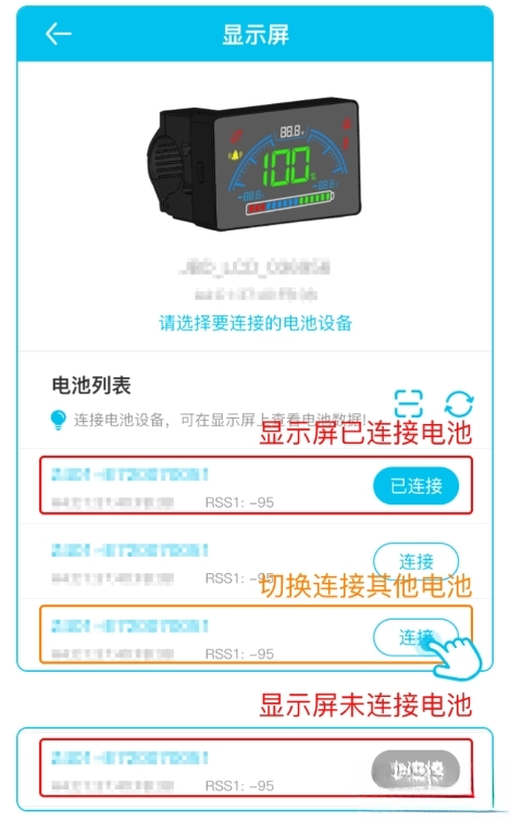 若要切换连接其他电池,只需在电池列表里选中未连接的电池,点击连接按钮就行。